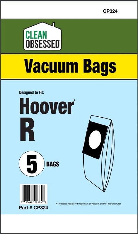 The Clean Obsessed HOOVER TYPE R Micro Paper Bags, 5/PK Part# CP324 are premium replacement vacuum bags designed specifically for Hoover vacuums requiring Type R. These micro paper bags deliver superior dust and allergen containment while maintaining optimal suction for consistent cleaning performance.