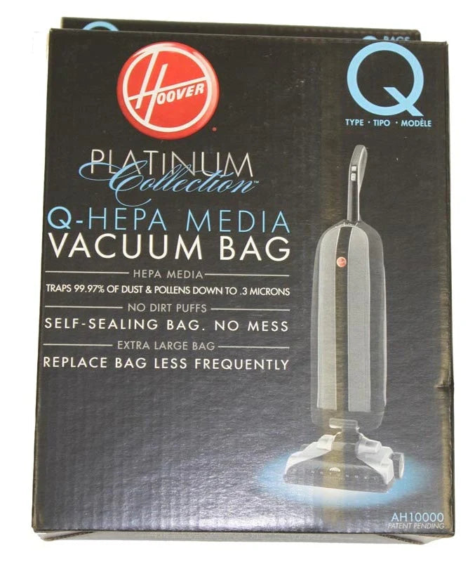 The Hoover Type Q HEPA Filtration Vacuum Bags, 2-Pack (Part #AH10000) by Hoover are genuine replacement vacuum bags designed for Hoover Platinum UH30010COM upright vacuum cleaners. They are available through Authorized Hoover Dealer Ace Vacuums.