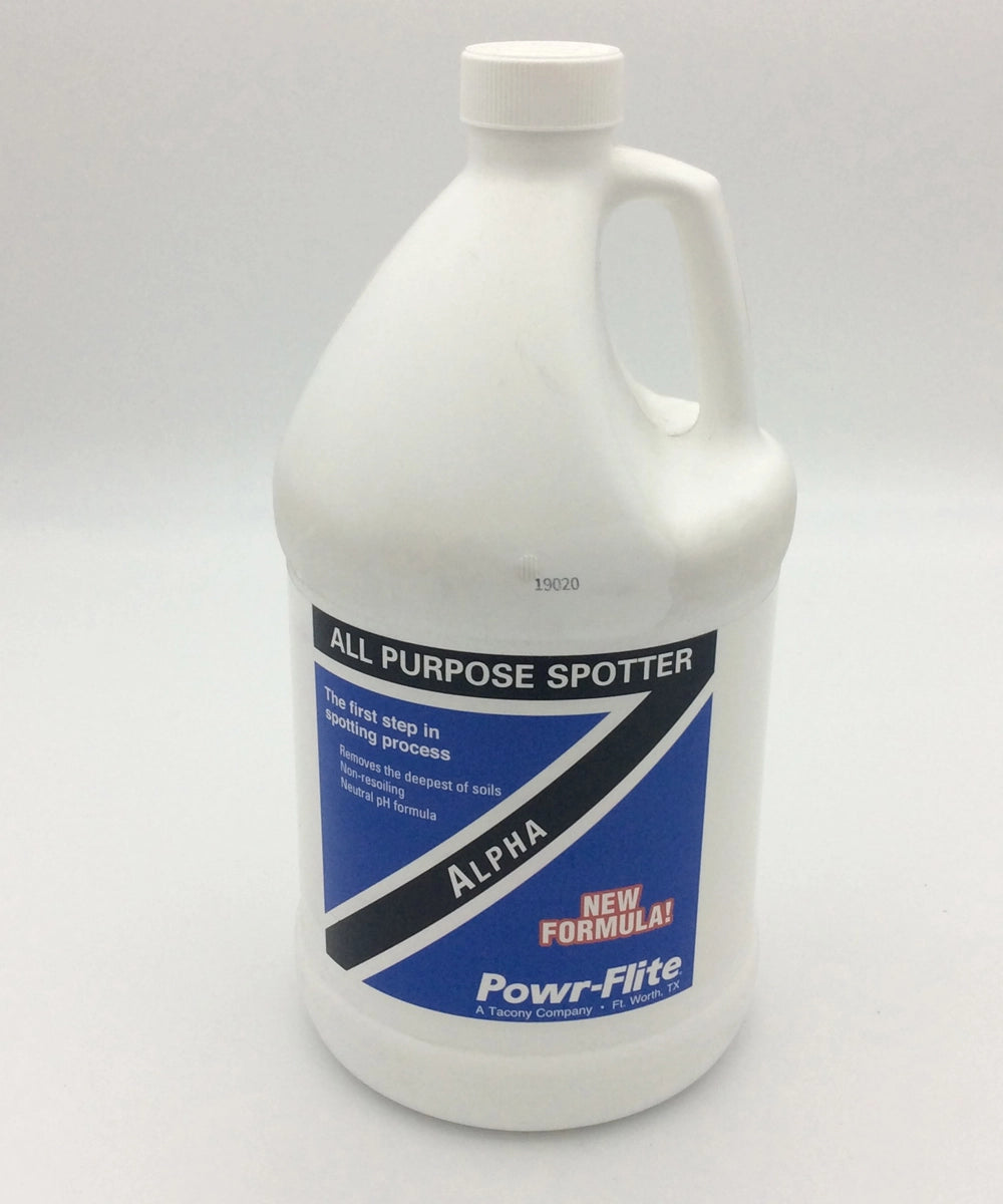 The Powr-Flite All-Purpose Spotter Alpha – 1 Gallon – Part# AL4 by Powr-Flite should be used according to manufacturer instructions. It can be purchased from Authorized Powr-Flite Dealer Ace Vacuums.