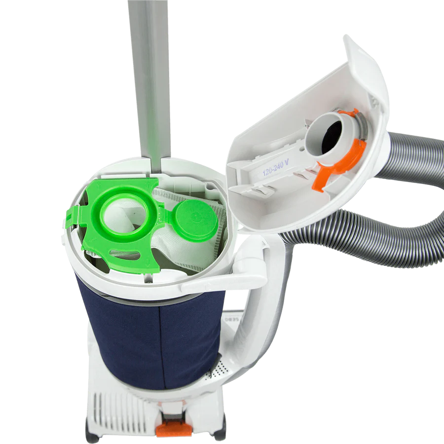 The ET-1 Powerhead adjusts to four height levels, ensuring optimal performance on any surface. Its sealed filtration system and hygienic bag design eliminate airborne dust — a feature that allergy sufferers and pet owners especially appreciate.