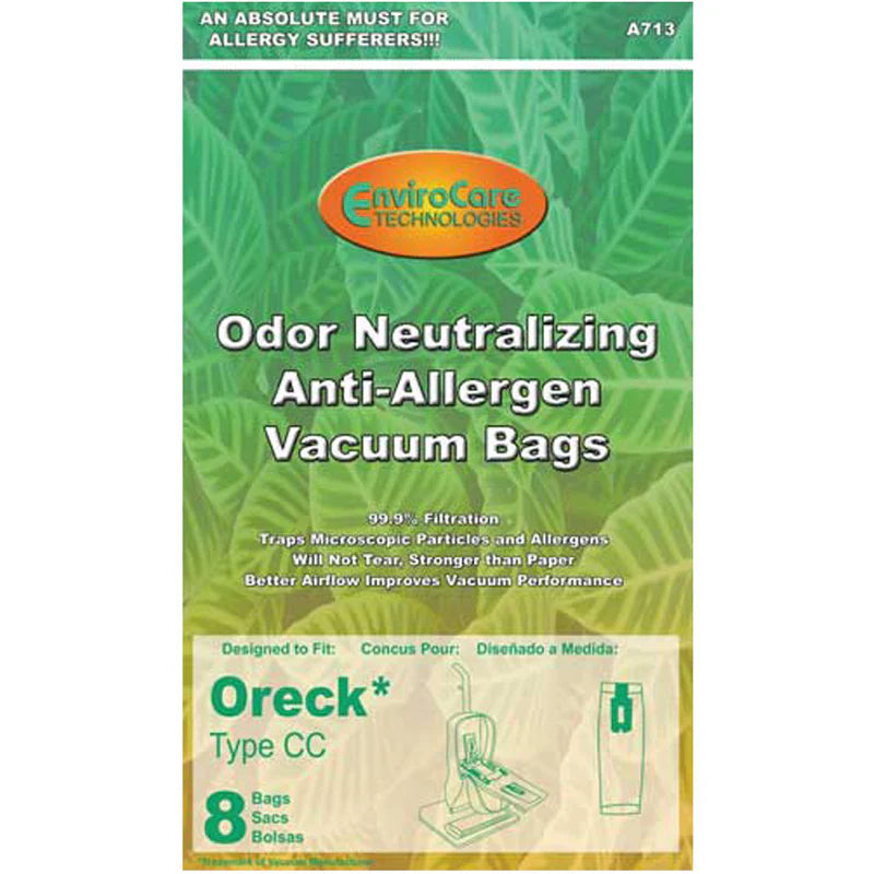 The Oreck XL Platinum HEPA-Type CC Sweeper Vacuum Bags 8-Pack – Part #A713 are engineered specifically for compatible Oreck models. Authorized Oreck Dealer Ace Vacuums can confirm proper fit.