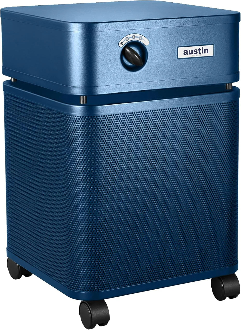 The Austin Air HealthMate Plus Junior Air Purifier | Midnight Blue | A250E1 stands out for its ability to remove both particulate matter and chemical pollutants, thanks to its unique potassium iodide carbon blend.