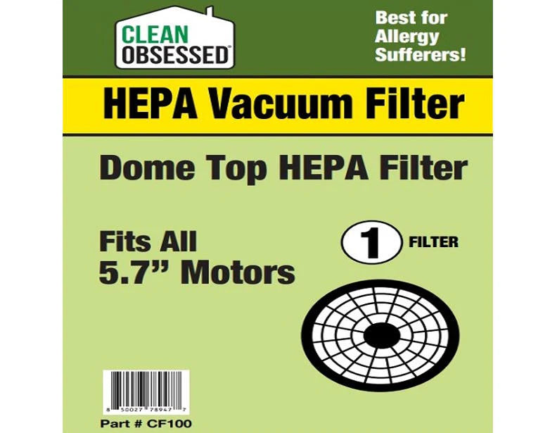 The Clean Obsessed Dome Top HEPA Filter w/ Frame Fits 5.7" Motors – Part# CF100 by Clean Obsessed is engineered to deliver superior air filtration and dependable performance for compatible vacuum systems. Designed specifically for 5.7-inch vacuum motors, this high-efficiency HEPA filter captures fine dust, allergens, and microscopic particles to maintain cleaner air and optimal motor protection.