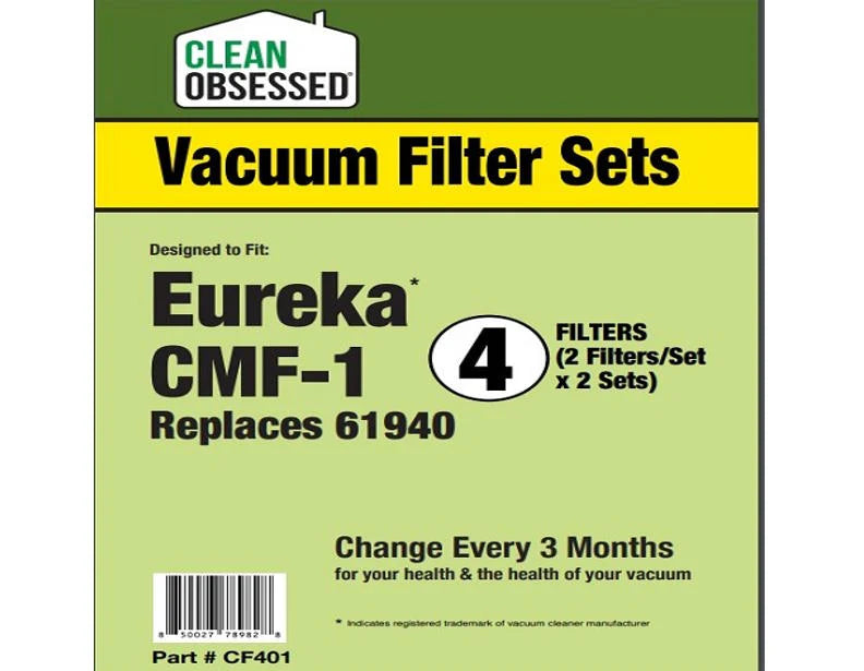 The Clean Obsessed Eureka CMF-1 1 mtr Filter & 1 Micro Filter Set – Part# CF401 by Clean Obsessed is designed for Eureka models that use CMF-1 filter configurations. Authorized Clean Obsessed Dealer Ace Vacuums can help confirm compatibility.