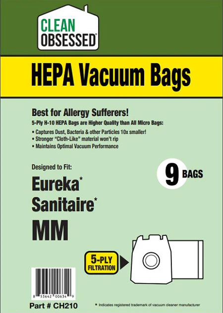 Clean Obsessed Eureka Sanitaire Type MM HEPA Vacuum Bags – 9 Pack Part #CH210