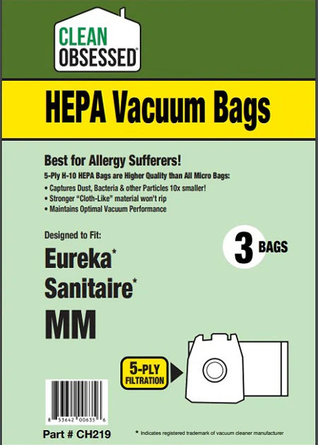 The Clean Obsessed Eureka Sanitaire Type MM HEPA Vacuum Bags – 3 Pack Part #CH219 are perfect for:
